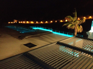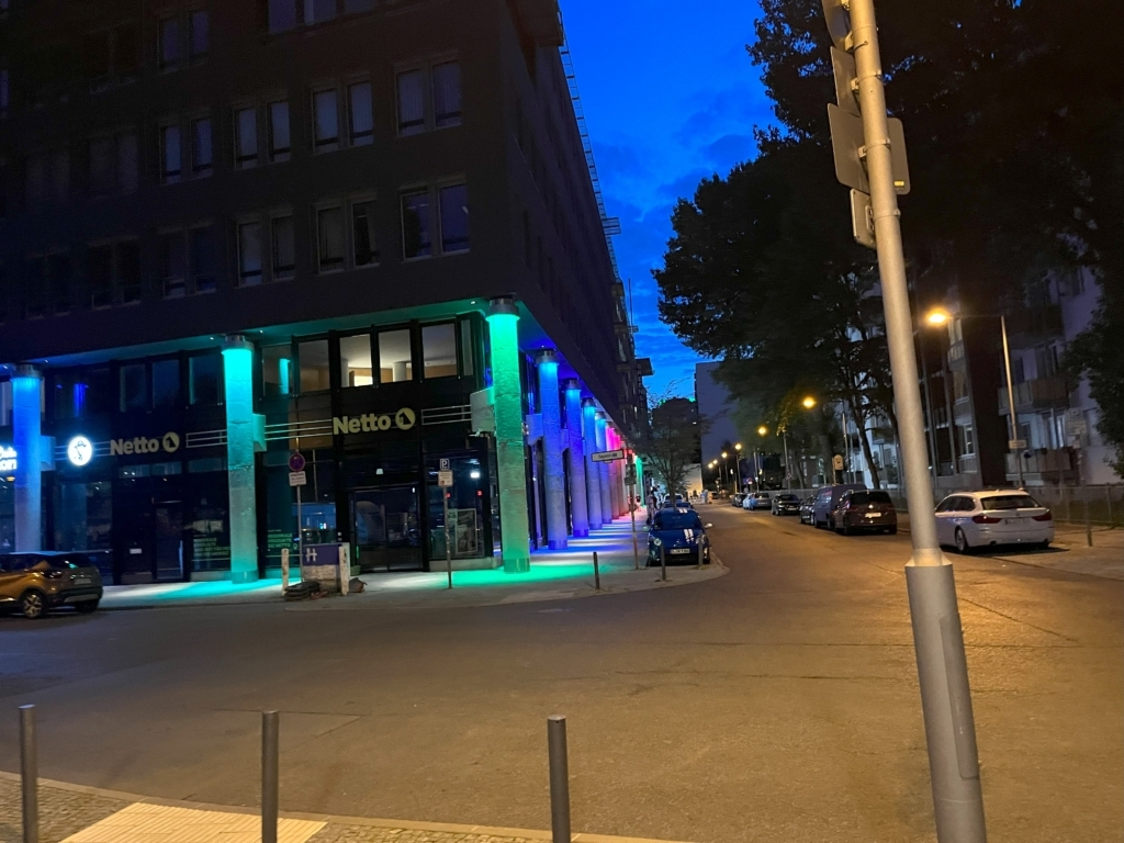 Beleuchtung des Stage Clubs mit RGB LED Leuchten, DMX steuerbar. Hierdurch kann die Beleuchtung des Clubs individuell an die Wünsche der Kunden bei Privatfeiern angepasst werden.